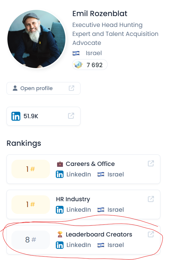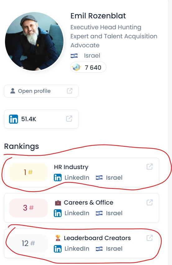 From my personal experience, Emil is a leading head hunter with great understanding of the Israeli employment market.